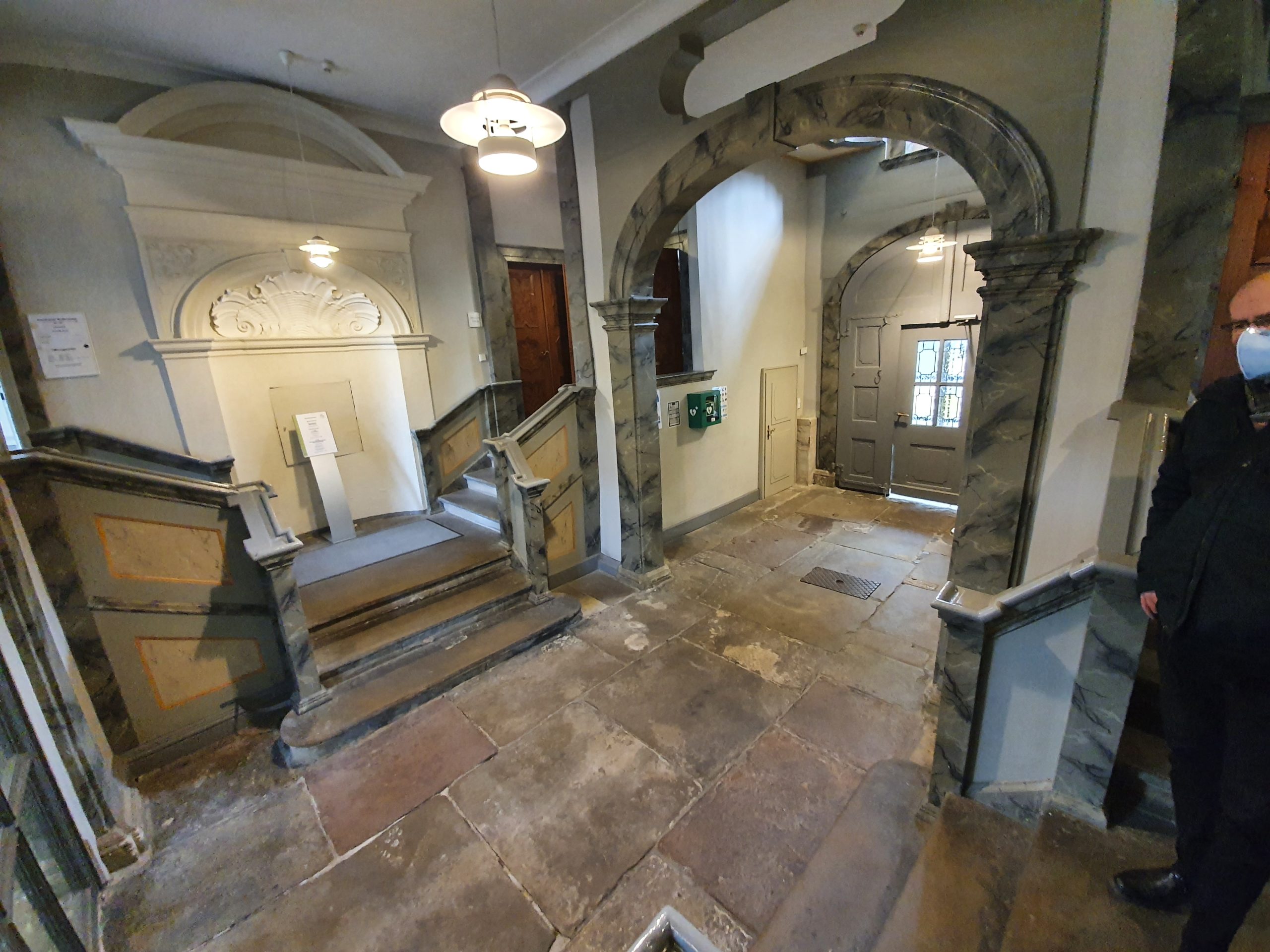 Das Gebäude steht unter Denkmalschutz. Die Baumaßnahme erfolgte unter Begleitung durch Restauratoren und Bauforscher. Insbesondere die von unten mit bemaltem Putz und von oben mit historischem Parkett belegten Decken erforderten maßgenau zugeschnittene Lösungen bei Reparaturen und Ertüchtigungsmaßnahmen.